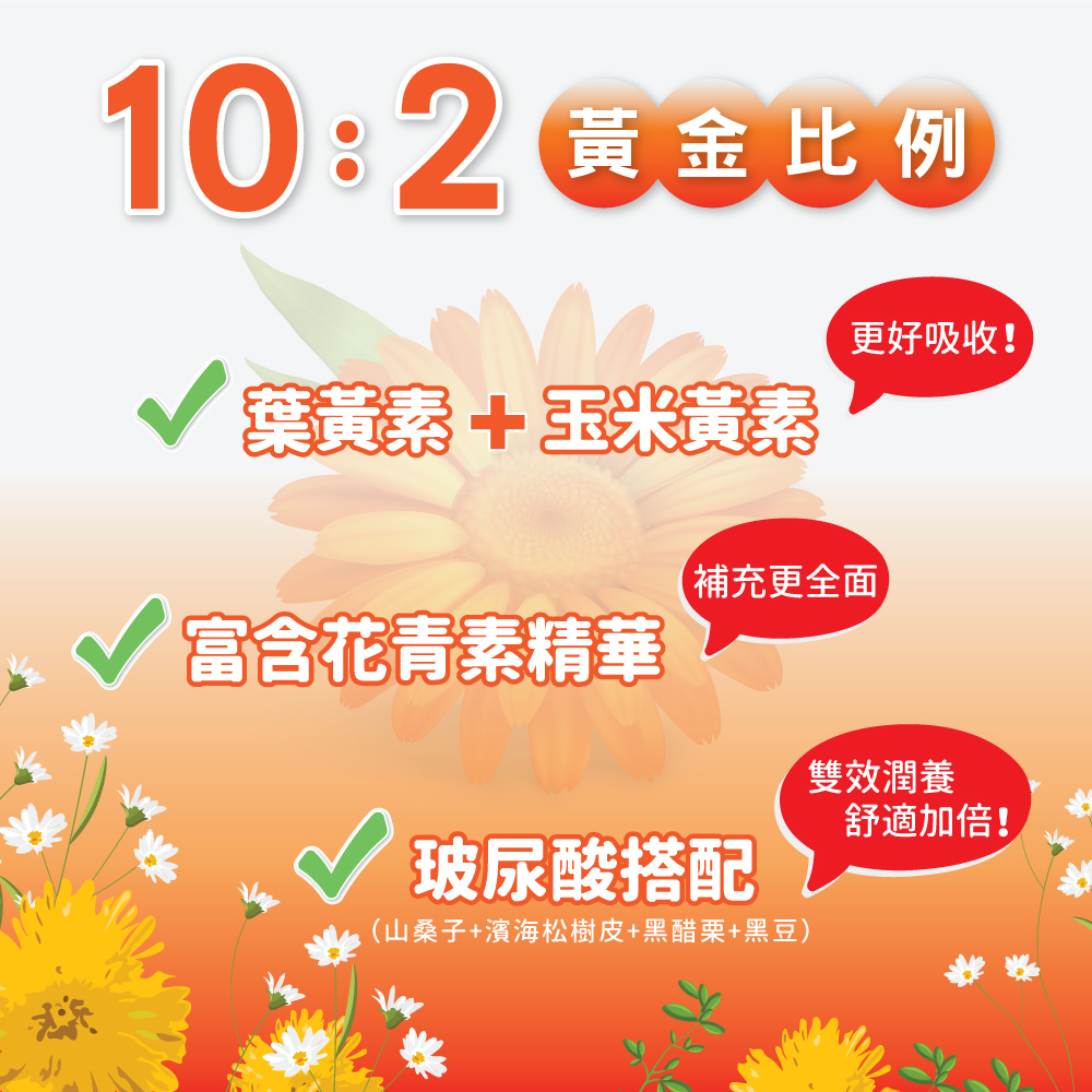 ●10:2 黃金比例 – 葉黃素 & 玉米黃素,更好吸收!